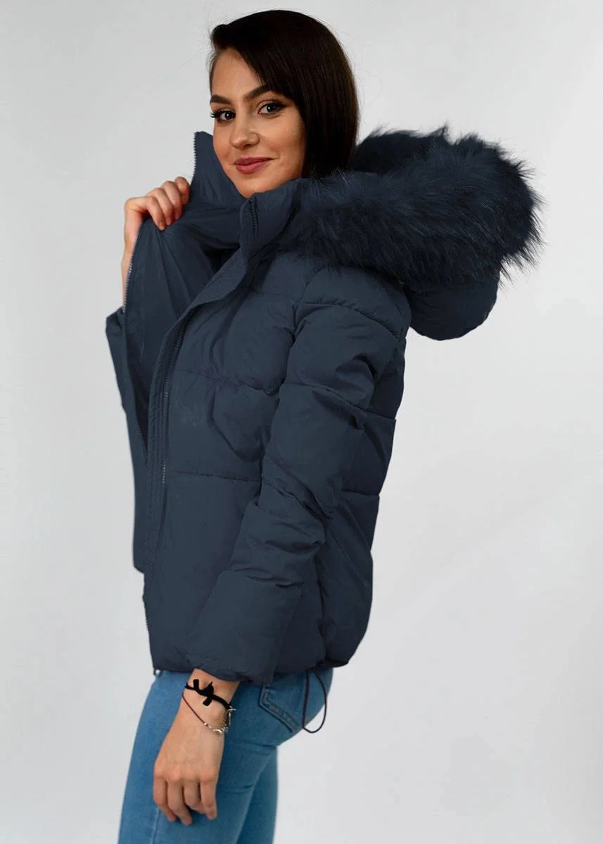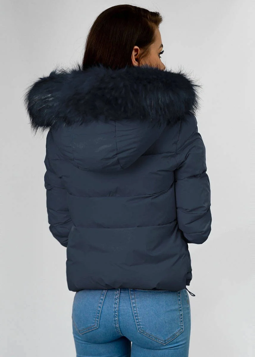 ZIMOWA KRÓTKA PIKOWANA KURTKA DAMSKA GRANATOWA (7694)