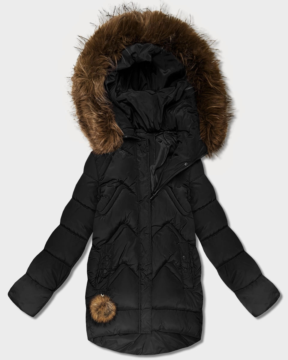 zimowa kurtka damska z kapturem czarna model 21783443 - HAPPY HOUSE