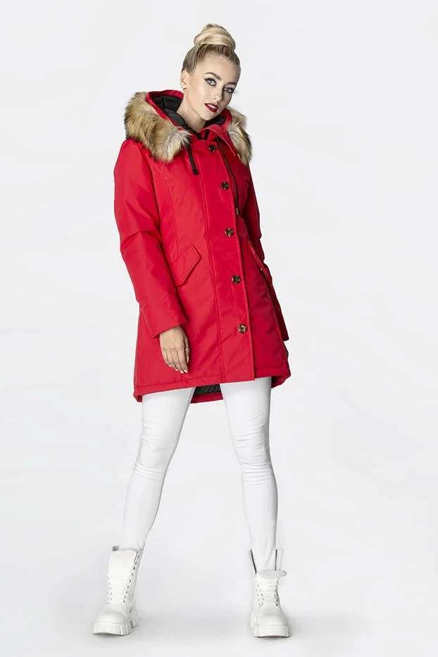 ZIMOWA KURTKA DAMSKA Z KAPTUREM CZERWONA model 21242599 - Ann Gissy