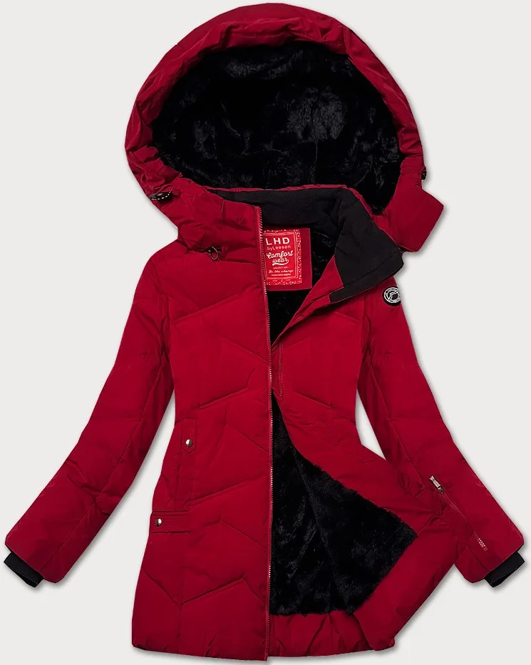 Zimowa kurtka damska z odpinanym kapturem LHD bordowa (LHD-24577)