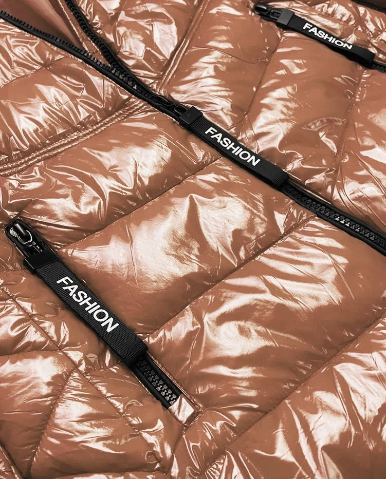 Zlatá dámská lakovaná bunda (B9759-101)