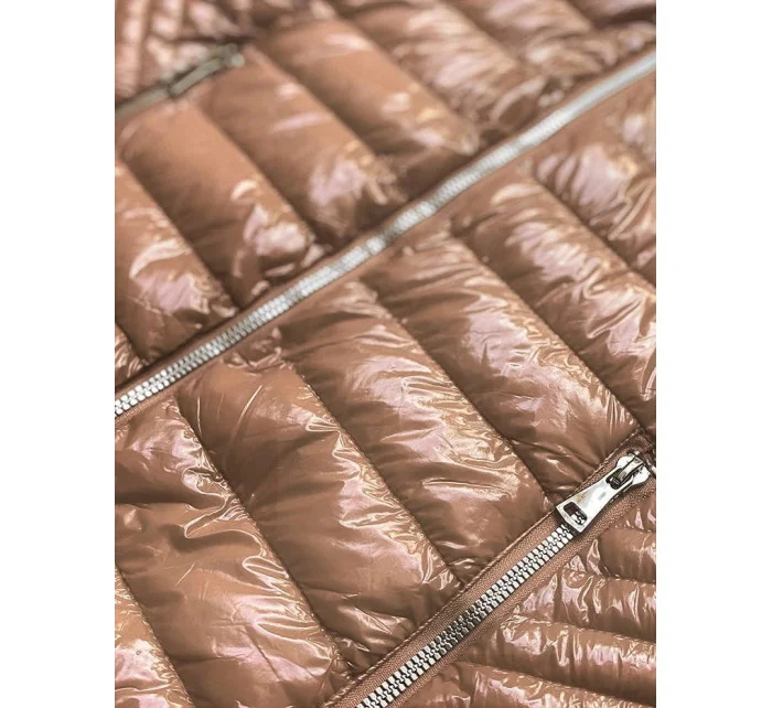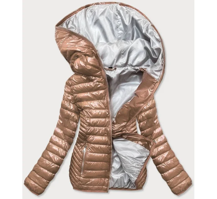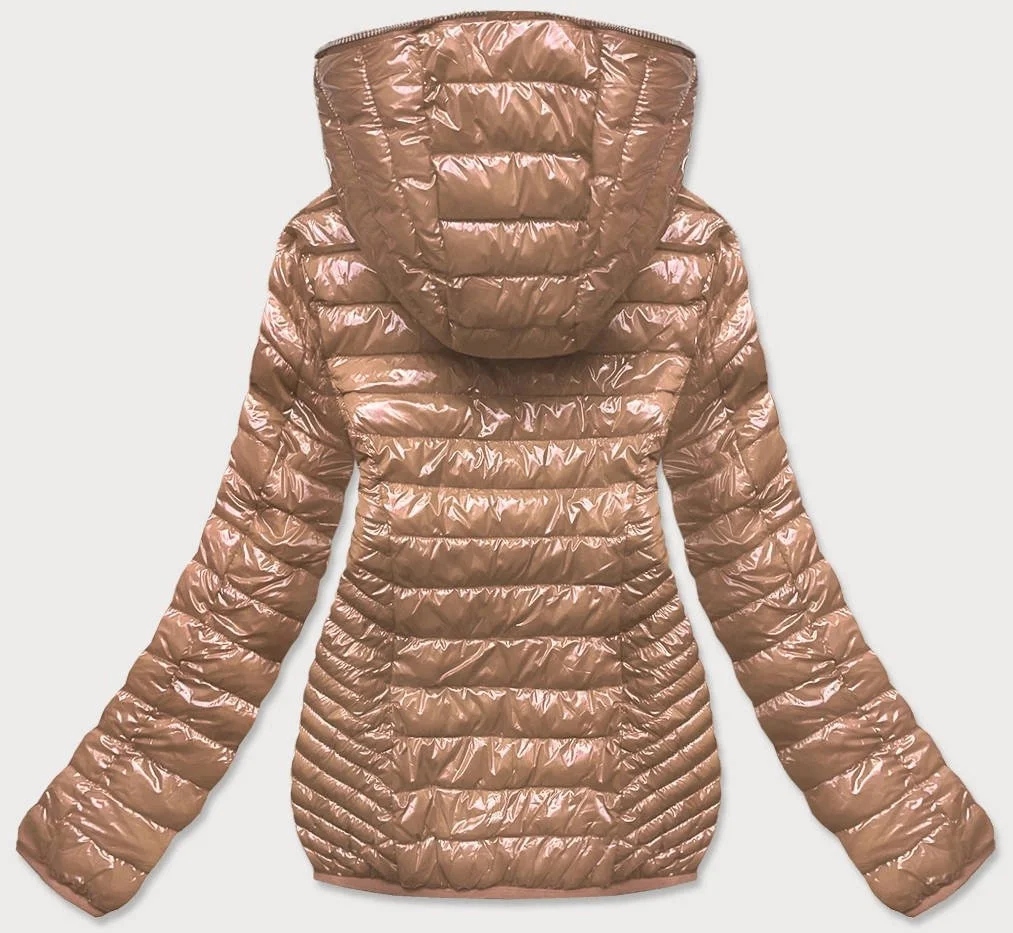 Zlatá prošívaná dámská bunda s kapucí (B9752)