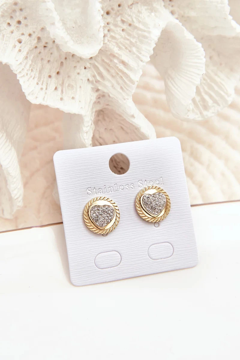 Zlaté kruhové náušnice z nerezové oceli se srdcem