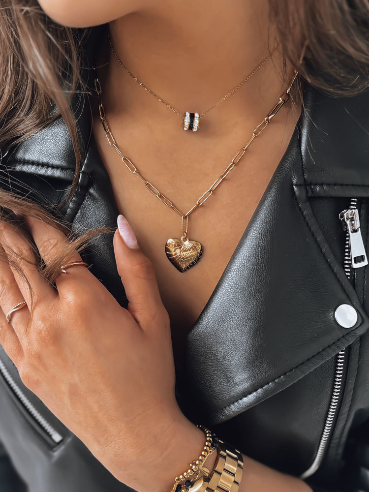 Mimořádně jemný návrh ve zlaté barvě pestrý, malý, ale působivě vypadající přívěsek v černé a stříbrné barvě. Má zapínání s nastavitelnou délkou.