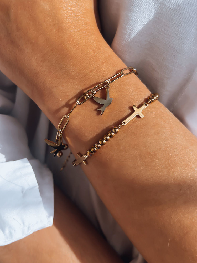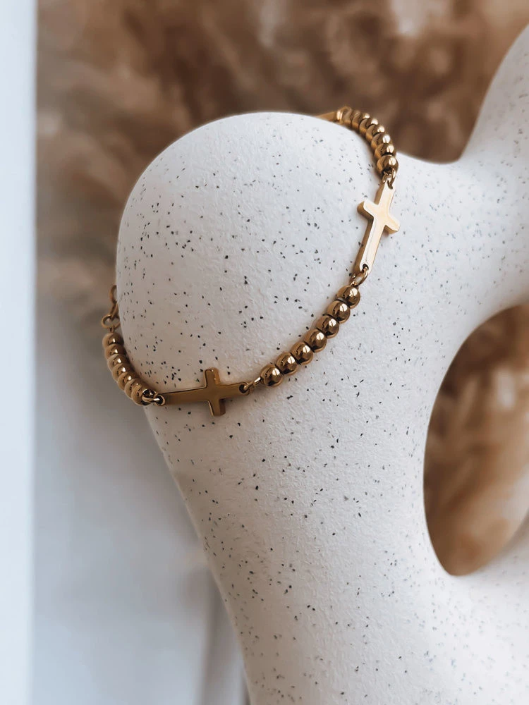 Tento elegantní dámský náramek s korálky a motivem křížku je dokonalým doplňkem vaší sbírky šperků. Náramek je vyroben z vysoce kvalitních materiálů, včetně kovových korálků a jemných, delikátních křížků, a je nejen krásný, ale také odolný a má dlouhou životnost.