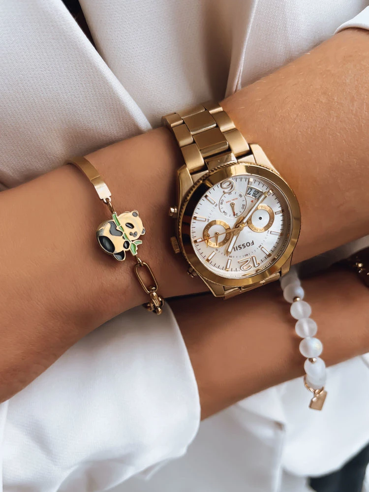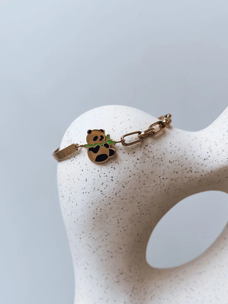Tento náramek s motivem pandy má zapínání s nastavitelnou délkou a skvěle se hodí ke každému oblečení.