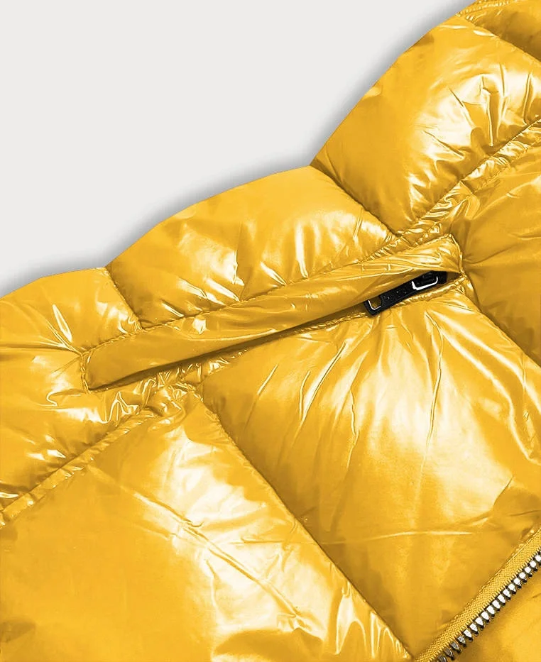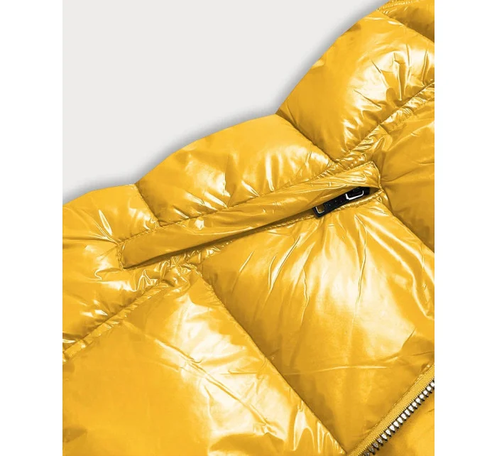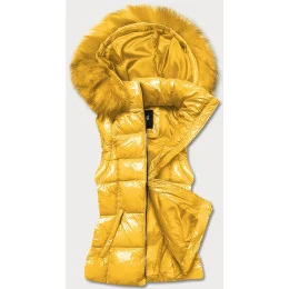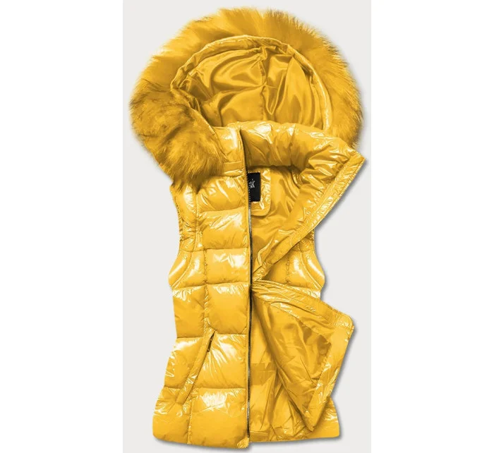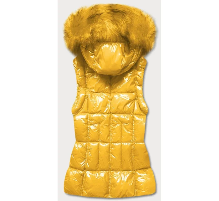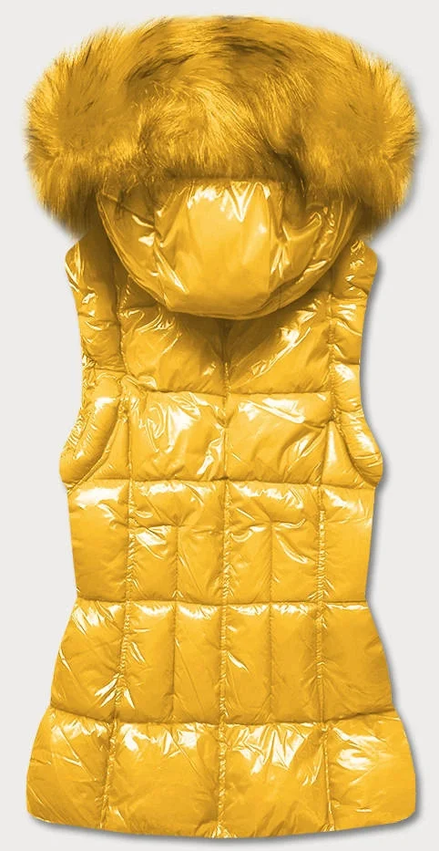 Žlutá lakovaná dámská vesta s kožešinou (DK027-86)