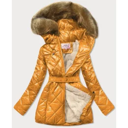 Žlutá lesklá zimní bunda s mechovitou kožešinou podšívkou (w756)