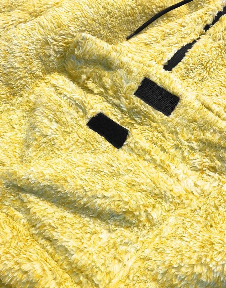 Mikina je vyrobená z měkkého kožešinového materiálu, má délku do pasu a obléká se přes hlavu. Model má jednu "klokaní" kapsu, která se nahoře zapíná suchým zipem. Na spodním okraji modelu je pružná šňůrka se stopery.