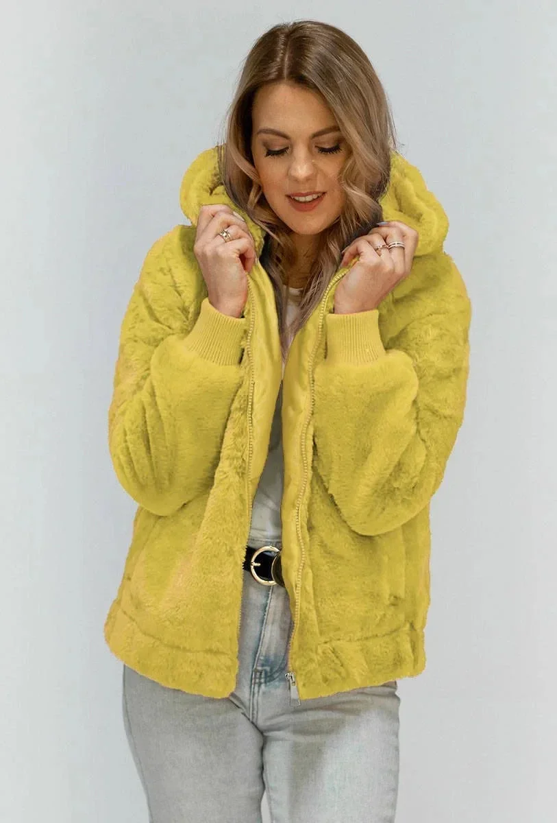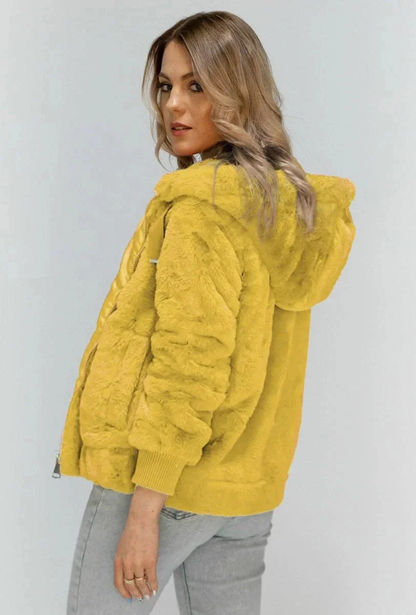 Žlutá plyšová bunda s kapucí (2019)