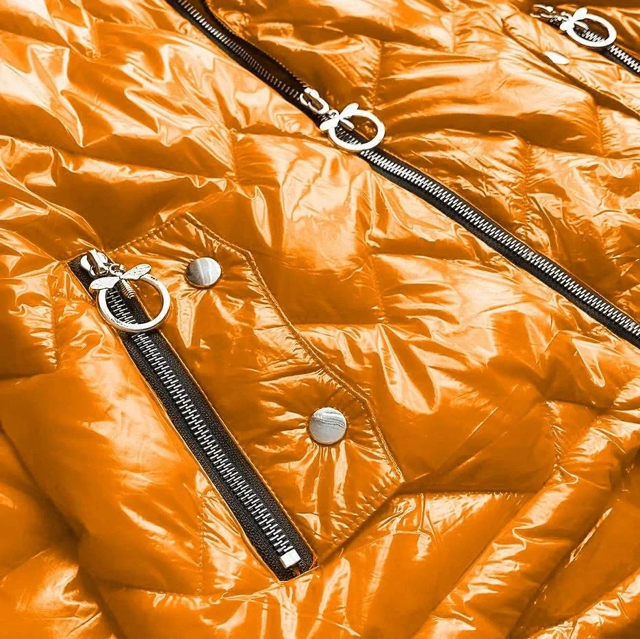 Bunda se lehce leskne, má volný střih a je lehce zateplená syntetickou péřovou výplní. Model má kapuci, kterou není možné odepnout. Bunda je lehce asymetrická, zapíná se zipem a má dvě kapsy.