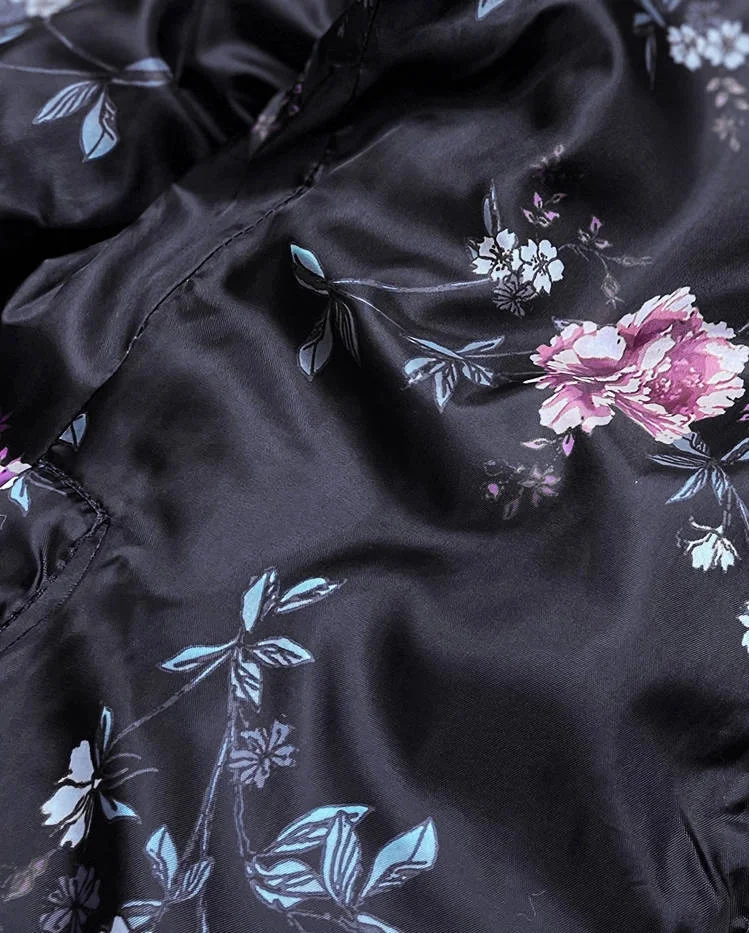 Bunda je zateplená tenkou vrstvou syntetické péřové výplně a má délku k bokům. Jedna strana bundy je prošívaná a druhá je květovaná. Model má kapuci, kterou je možné odepnout. Bunda má dvě kapsy a zapíná se zipem. Na bocích modelu jsou pružné vsadky.
