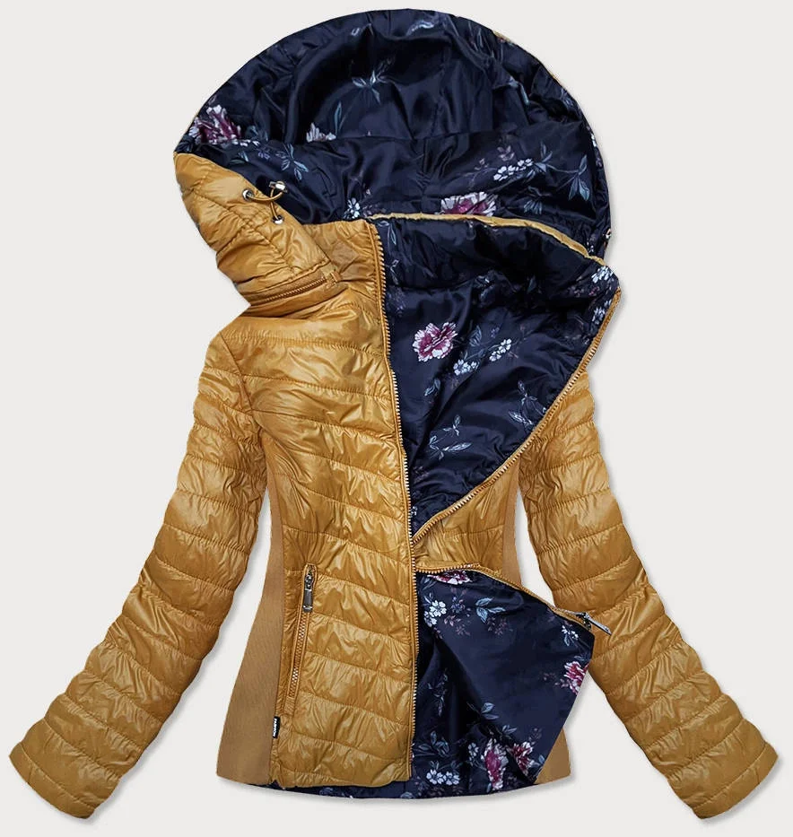Žlutá prošívaná oboustranná dámská bunda (RQW-6844)