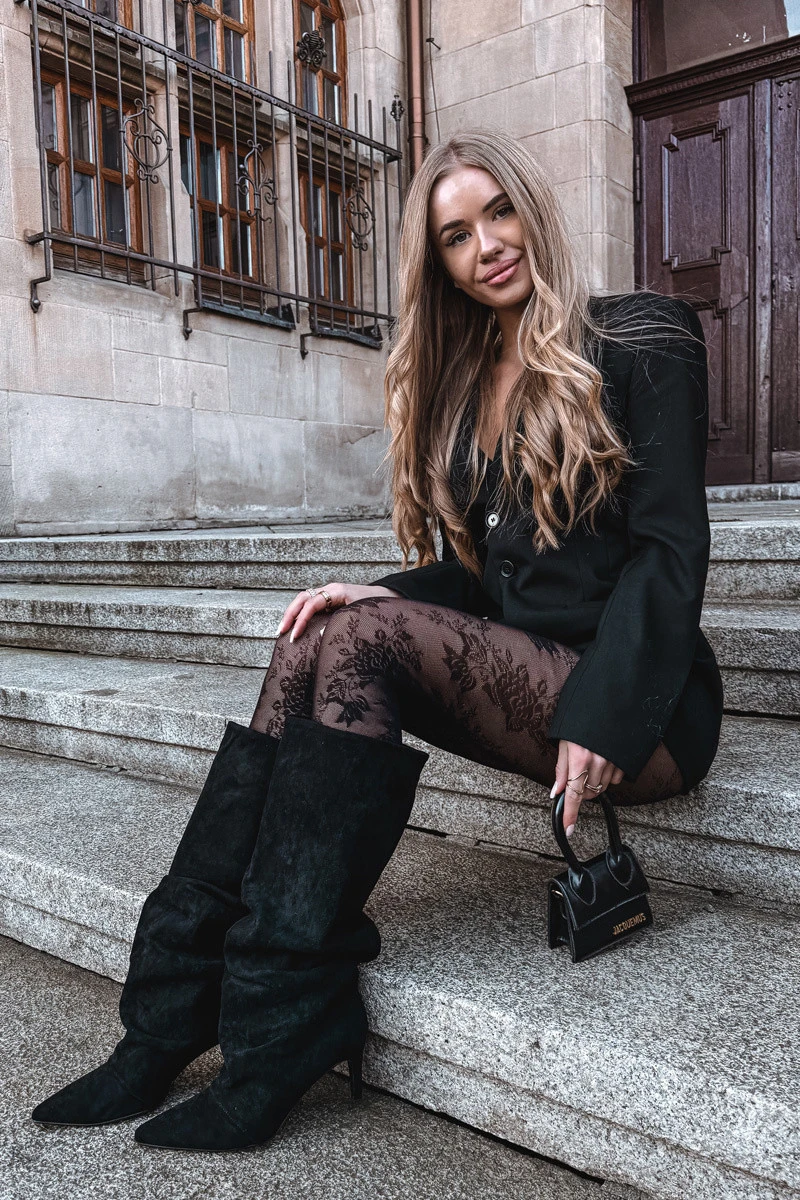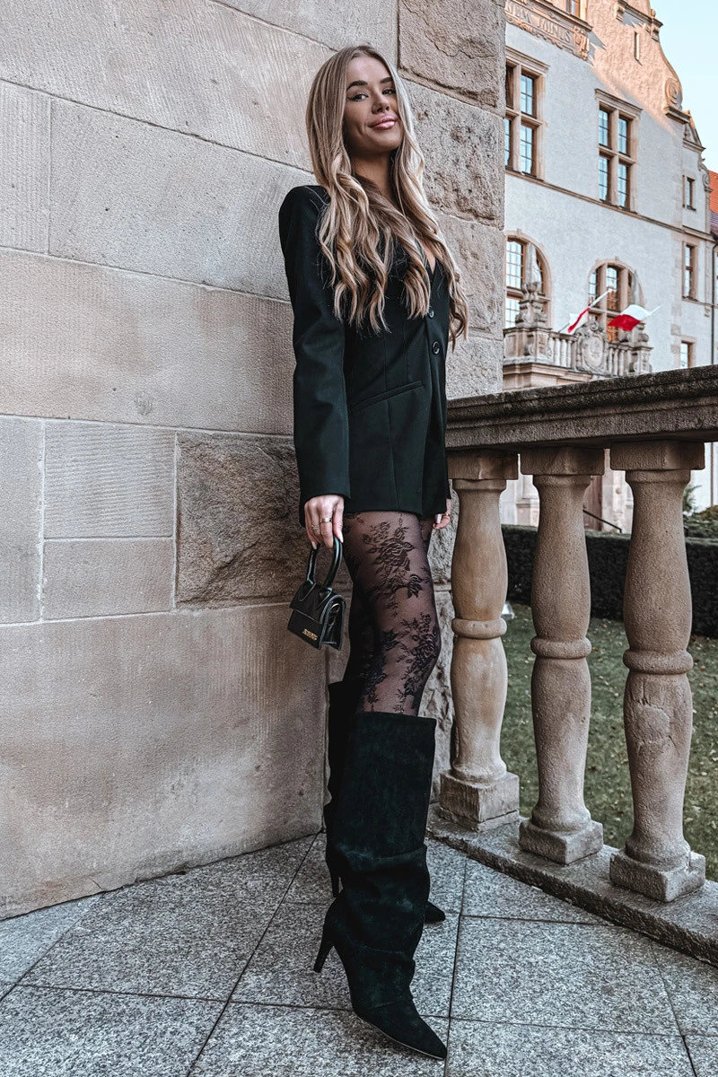 Dámské kozačky vyrobené z měkkého umělého semiše jsou elegantní a ženskou volbou na chladnější dny. Model na štíhlém podpatku krásně zvýrazňuje nohy a špičatý nos dodává šarm a opticky zeštíhluje postavu. Gáčková, volná špička dodává celku módní charakter. Boty jsou nazouvací a vyhřívané botníkem, což zajišťuje pohodlí a tepelný komfort. Tento velmi stylový střih skvěle doplní jak elegantní šaty, tak casual outfity s džínami, čímž vytváří módní a ženský vzhled. Při výběru velikosti prosíme, řiďte se tabulkou velikostí.