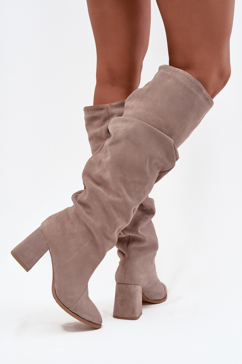 Zmačkané kozačky z přírodního semiše na sloupku zateplené Zazoo 4228 béžové