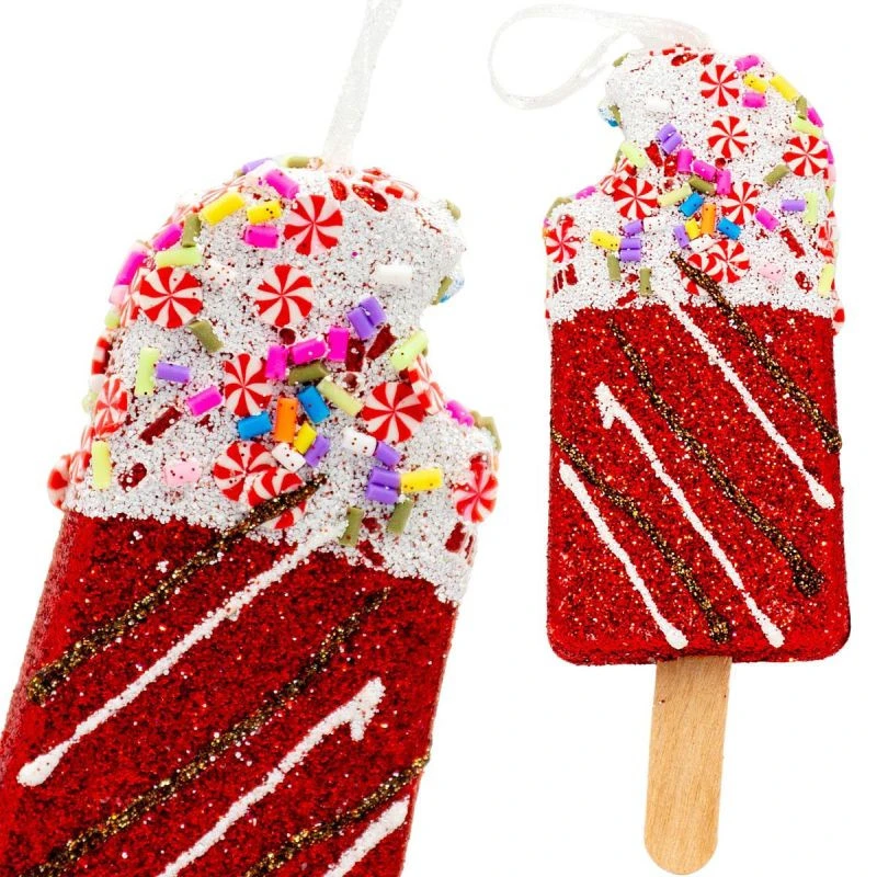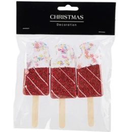 Pokud chcete vánoční výzdobu obohatit o trochu zábavy a sladkostí, sáhněte po sadě závěsných ozdob ve tvaru zmrzliny - 3 kusy. Třpytivé, třpytivé a barevnými detaily zdobené přívěsky vypadají jako sladká lízátka a jsou ideální na vánoční stromek, girlandy, věnce nebo jako součást zimních aranžmá.