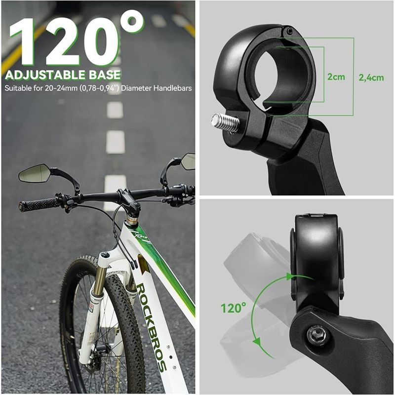 Nastavitelná základna: Zrcátko je vhodné pro většinu řídítek jízdních kol o průměru 20-24 mm