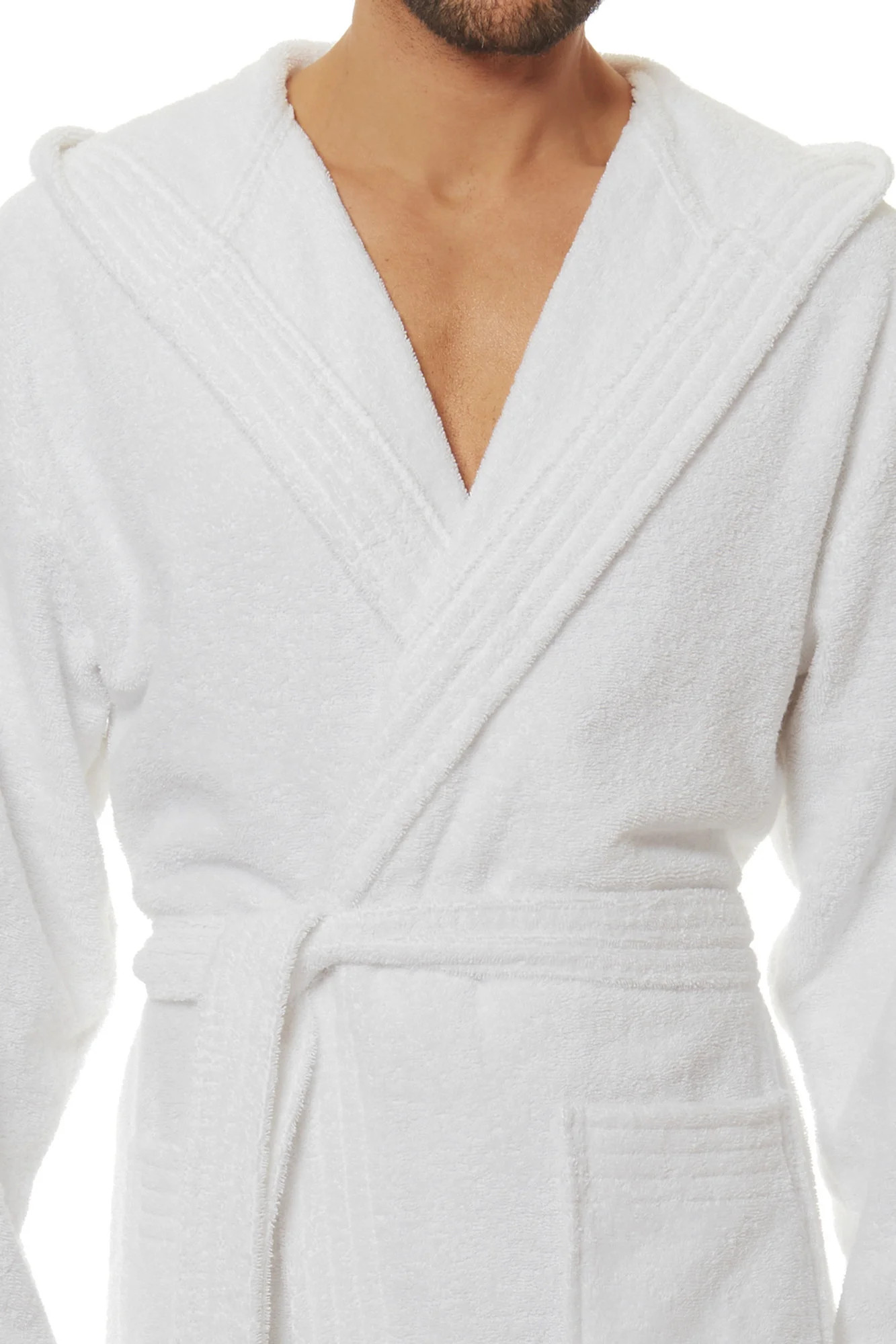 Župan je vyrobený z tzv. froté, má kapsy a v pase se zavazuje.