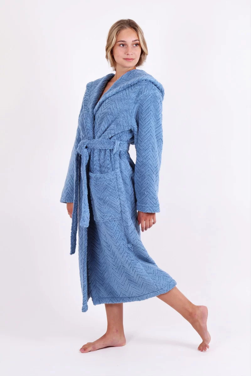 Župan je vhodný pro muže i ženy, je dlouhého střihu se dvěmi kapsami a páskem.