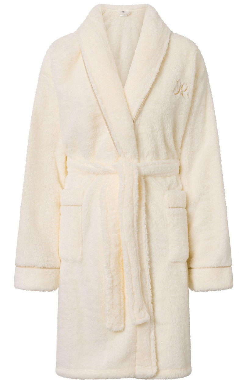 Toužíte po relaxaci? Večer si oblékněte teplý, nadýchaný a měkký župan, který vaše tělo zahalí a dodá mu mimořádně příjemný pocit. Župan Glamour je náš návrh na relaxaci ve velmi elegantním prostředí. Límec i rukávy županu jsou zakončeny zlatým lemováním, které nejen krásně vypadá, ale také přitahuje pozornost. Okamžitě v něm budete vypadat jako princezna. Župan je vyroben z mimořádně měkkého a kvalitního úpletu a je v krásné světlé ecru barvě. V pase je vázačka a na bocích jsou dvě kapsy. Zlatá výšivka loga značky na hrudi.