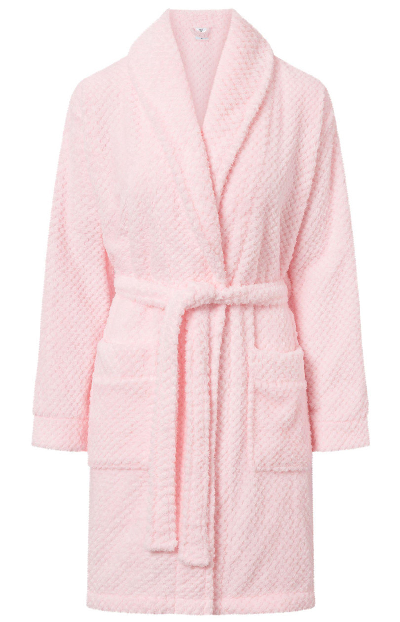 Dámský župan s dlouhými rukávy a páskem na zavázání. Župan s velkými kapsami. Župan z měkkého materiálu příjemného na dotek.