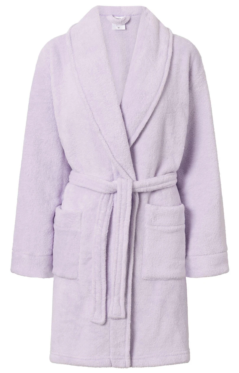 Volný a pohodlný župan s dlouhými rukávy a páskem na zavazování. Šaty s kapsami.