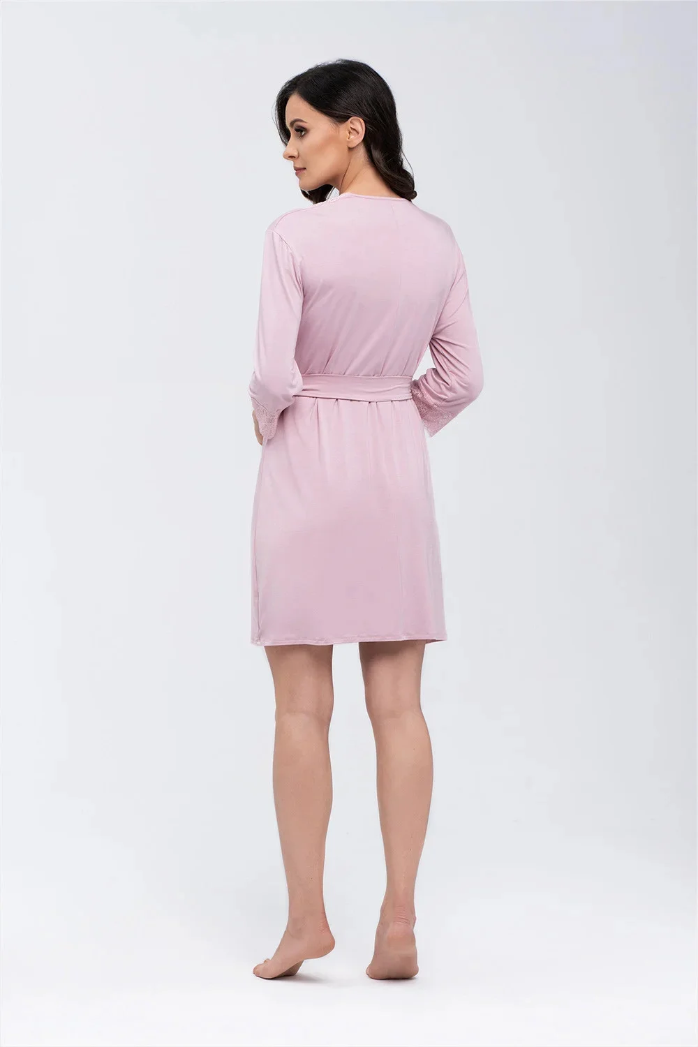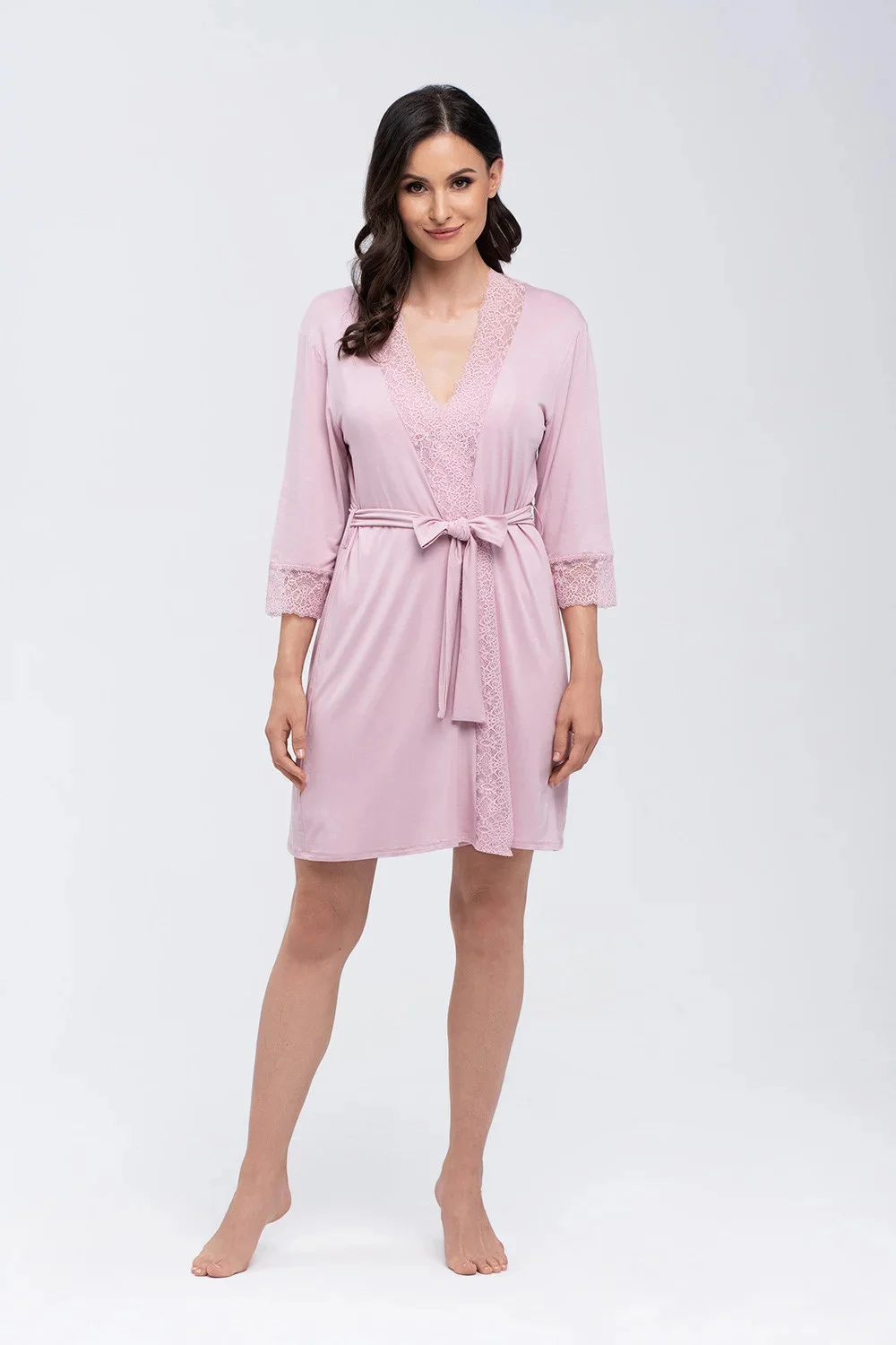 Klasický župan s krajkou a 3/4 rukávy je ideální na popíjení ranní kávy. Po celé délce i na rukávech je našita krajka. Délka ke kolenům neomezuje v pohybu a pásek v pase umožňuje zvýraznit vaši siluetu. Župan je vyroben z viskózy, která je měkká na dotek a dokonale přiléhá k tělu. Najdete ji v růžové a černé barvě. Tvoří skvělý komplet s našimi košilkami Miranda a Simone. Taková sada je ideálním dárkem.