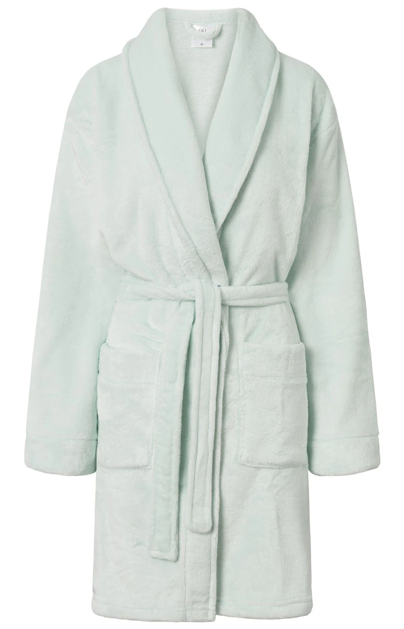 Dámský župan s dlouhými rukávy, kapsami a páskem na zavazování. Župan je vyroben z látky příjemné na dotek.
