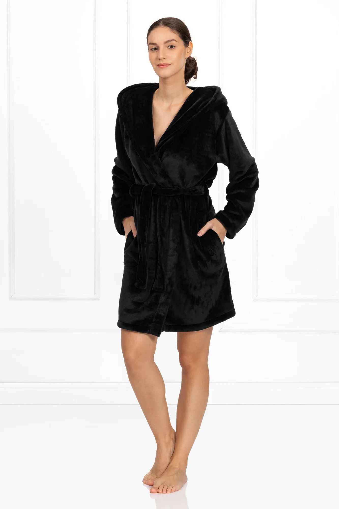 Kitty je hřejivý a na dotek velmi příjemný župan v černé barvě. Klasický střih s dlouhými rukávy a zavazováním v pase. Vyniká především ušima na kapotě. Prezentuje se okouzlujícím způsobem. Perfektní domácí oblečení. Polský výrobek. Vysoká kvalita.