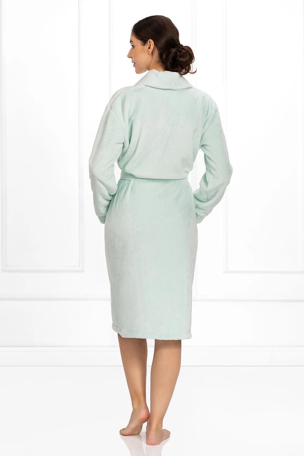 Vyrobeno z vysoce kvalitní, měkké tkaniny. Tkanina příjemná na dotek. Vysoká kvalita zpracování a použitých materiálů. Klasický střih županu. Župan s kapsami, bez kapuce, zavazuje se v pase. Kapsy na bocích. Župan s dlouhými rukávy. Rukávy zakončené manžetami. Délka županu do půli stehen. Ideální jako dárek. Baleno v sáčku. Polský výrobek. Ideální také jako domácí oblečení.