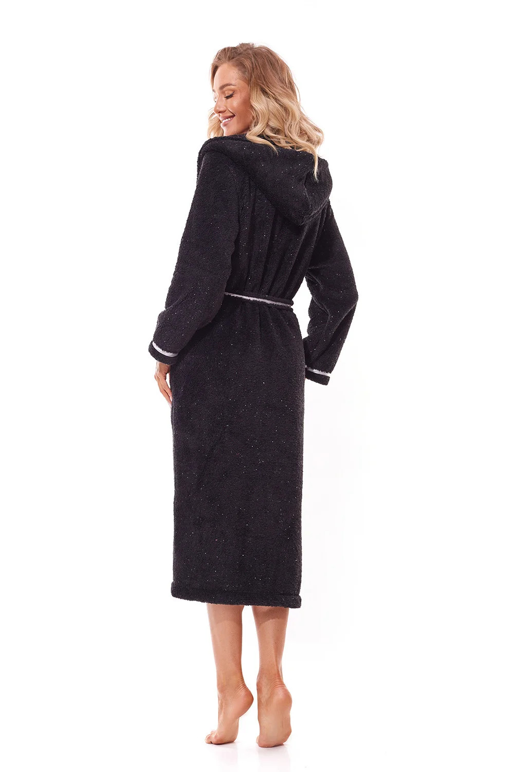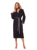 Tento župan je kombinací pohodlí a elegance. Díky volnému a pohodlnému střihu se pohodlně nosí a kapuce mu dodává módní nádech. Župan je vybaven praktickými kapsami pro uložení drobností. Lemování (lemování) dodává eleganci a třídu. Je vyroben z lesklé pleteniny, která mu dodává zvláštní kouzlo. Rukávy jsou dlouhé, takže je ideální pro chladnější večery. Vysoce kvalitní polský výrobek zabalený v elegantním pouzdře. Je ideální volbou jak pro domácí relaxaci, tak jako domácí oděv, kterým se můžete pochlubit.