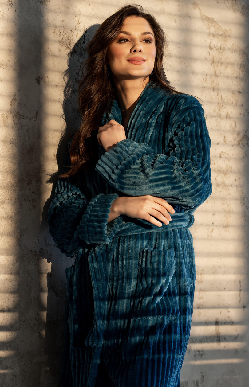 Elegantní ženský župan, který spojuje styl a pohodlí v jednom. Navržen s ohledem na každodenní používání, skvěle poslouží jak jako praktické domácí oblečení, tak i elegantní dárek díky módní barvě a vysoké kvalitě zpracování. Model s dlouhými rukávy zakončenými manžetami představuje klasický styl, a praktické kapsy mu dodávají funkcionalitu. Šňůrka v pase umožňuje perfektní přizpůsobení postavě, zajistí pohodlné nošení. Materiál s nízkou srčností zaručuje trvanlivost a estetický vzhled po dlouhou dobu. Župan je balen v elegantním pytli, což z něj činí skvělý dárek. Navržen a ušit v Polsku s důrazem na každý detail, představuje ideální volbu pro ženy, které si cení módního vzhledu a pohodlí v každodenním životě.