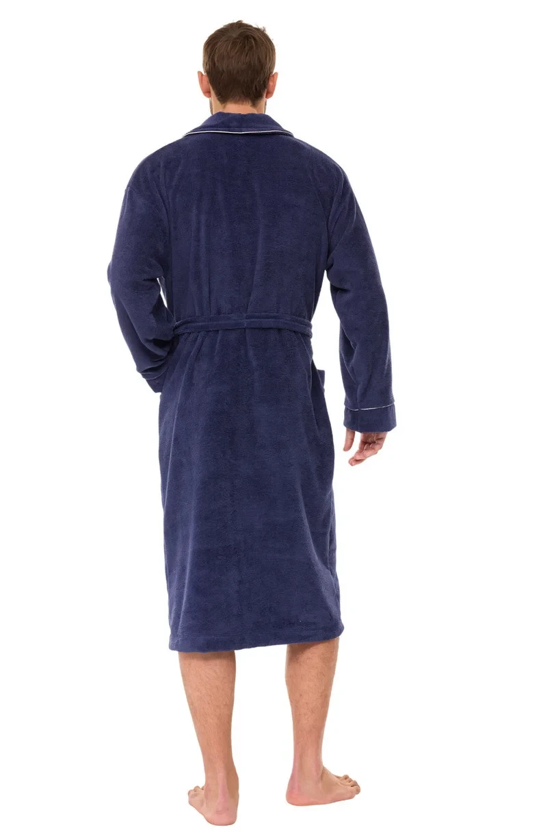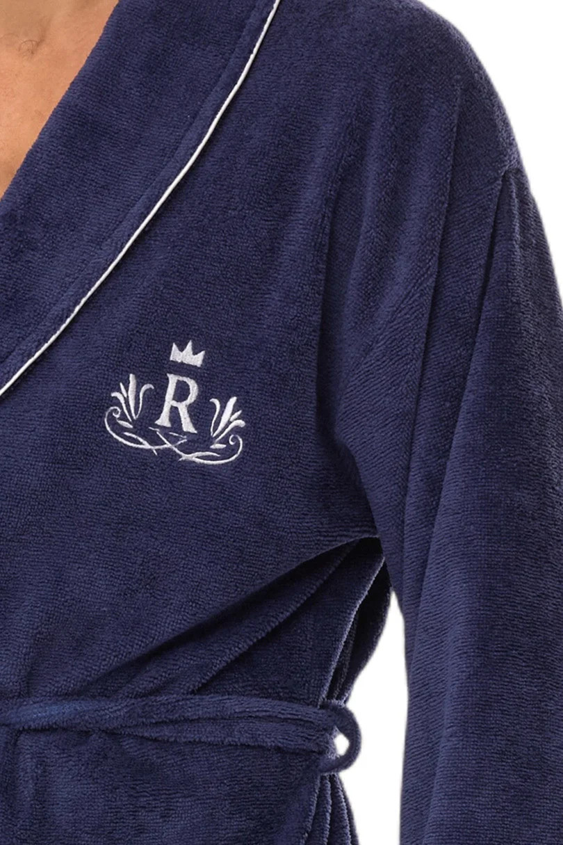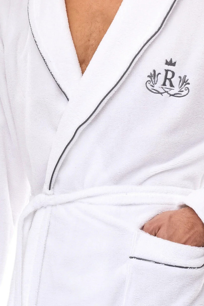 Szlafrok męski 2523 to synonim luksusu i wygody dla mężczyzn ceniących elegancki styl nawet w domowym zaciszu. Wykonany z wysokiej jakości tkaniny będącej połączeniem naturalnego bambusa i bawełny, zapewnia nie tylko miękkość, ale też doskonałą oddychalność oraz właściwości antybakteryjne. Klasyczny krój z kołnierzem szalowym, wykończenia z kontrastową lamówką i haftowane logo nadają mu wyjątkowego charakteru. Szlafrok wyposażono w praktyczne kieszenie i pasek w talii. Dostępny w dwóch kolorach: elegancka biel i stylowy granat.