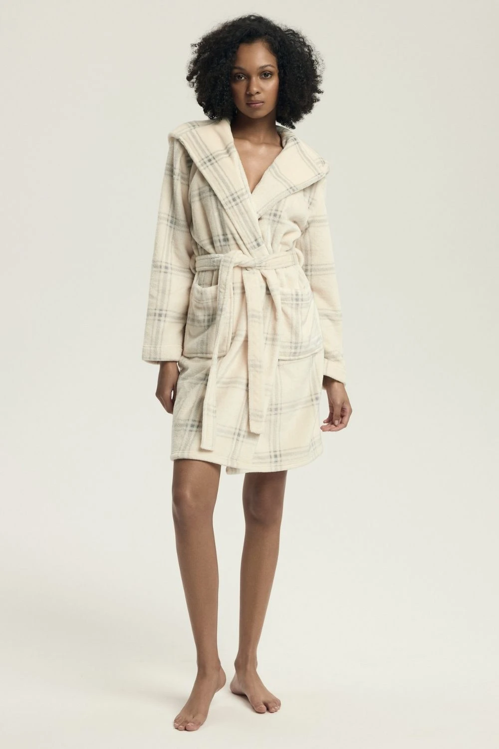 Pohodlný a stylový župan pro ženy s uvolněným a pohodlným střihem, vyrobený z měkkého materiálu s potiskem, který mu dodává ženský charakter. Model s kapucí a praktickými kapsami spojuje pohodlí s funkcionalitou. Délka po kolena zajistí volnost pohybu a šněrování na pásek umožní ideální přizpůsobení postavě. Župan je dodáván v plastovém sáčku, skvělá volba také jako dárek.