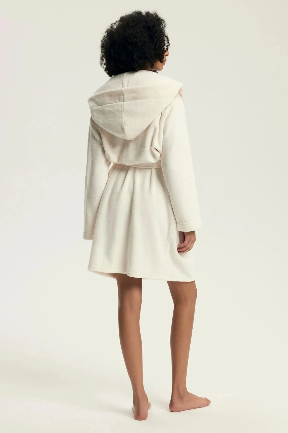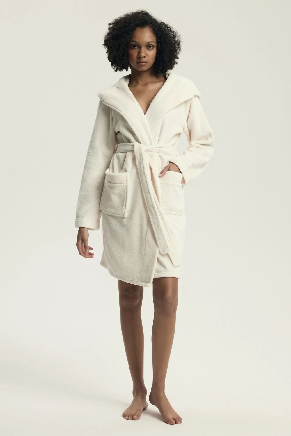 Měkký a příjemný župan pro ženy s volným a pohodlným střihem, který zajišťuje plnou volnost pohybu a pohodlí při nošení. Vyrobený z teplého, příjemného na dotek materiálu, skvěle drží teplo, ideální na chladnější dny a večery. Model má kapuci, praktické kapsy a pásek, který umožňuje přizpůsobení postavy. Délka po kolena z něj činí lehký a pohodlný k nosení. Župan je dodáván v fóliovém sáčku, skvělý také jako dárek.