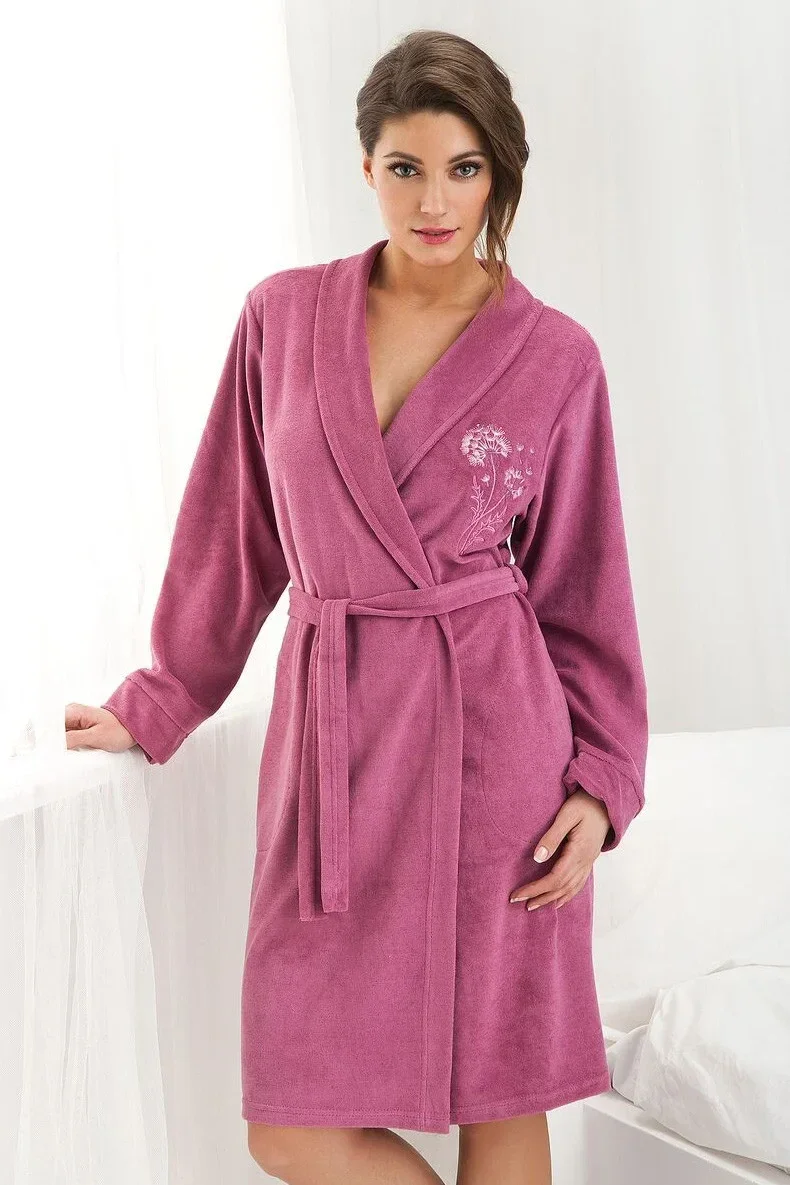 Výjimečně krásný župan z bavlny. Stylový šálový límec, krásná vyšívaná aplikace na hrudi a zavazování v pase. K dispozici až do velikosti 4 XL. Náš bestseller.