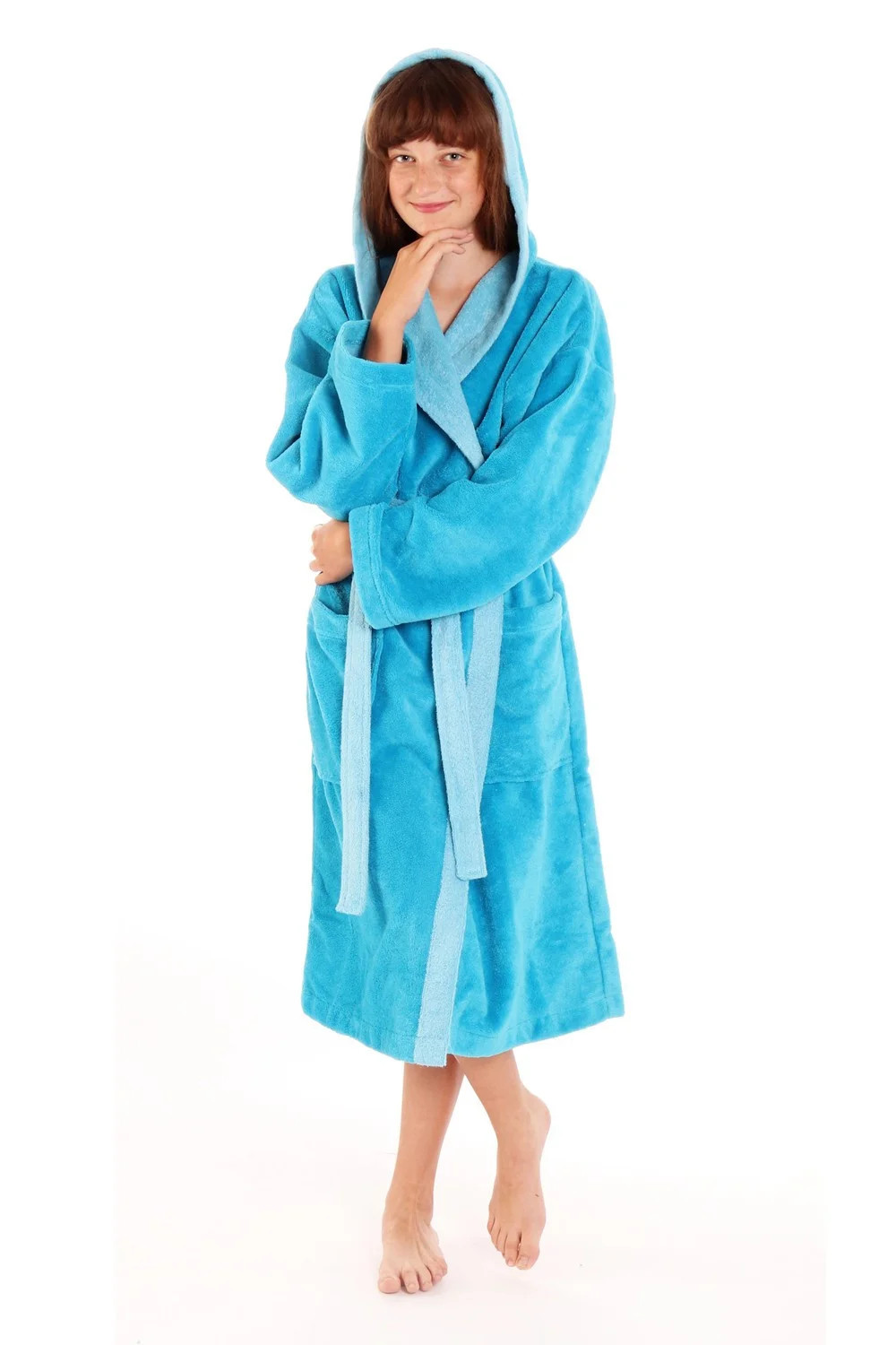 Střih s kapucí umožňuje nejen pohodlné vysušení vlasů, ale také vás- budete-li mít mokré vlasy- ochrání před chladem při přechodu z vířivky nebo bazénu.
