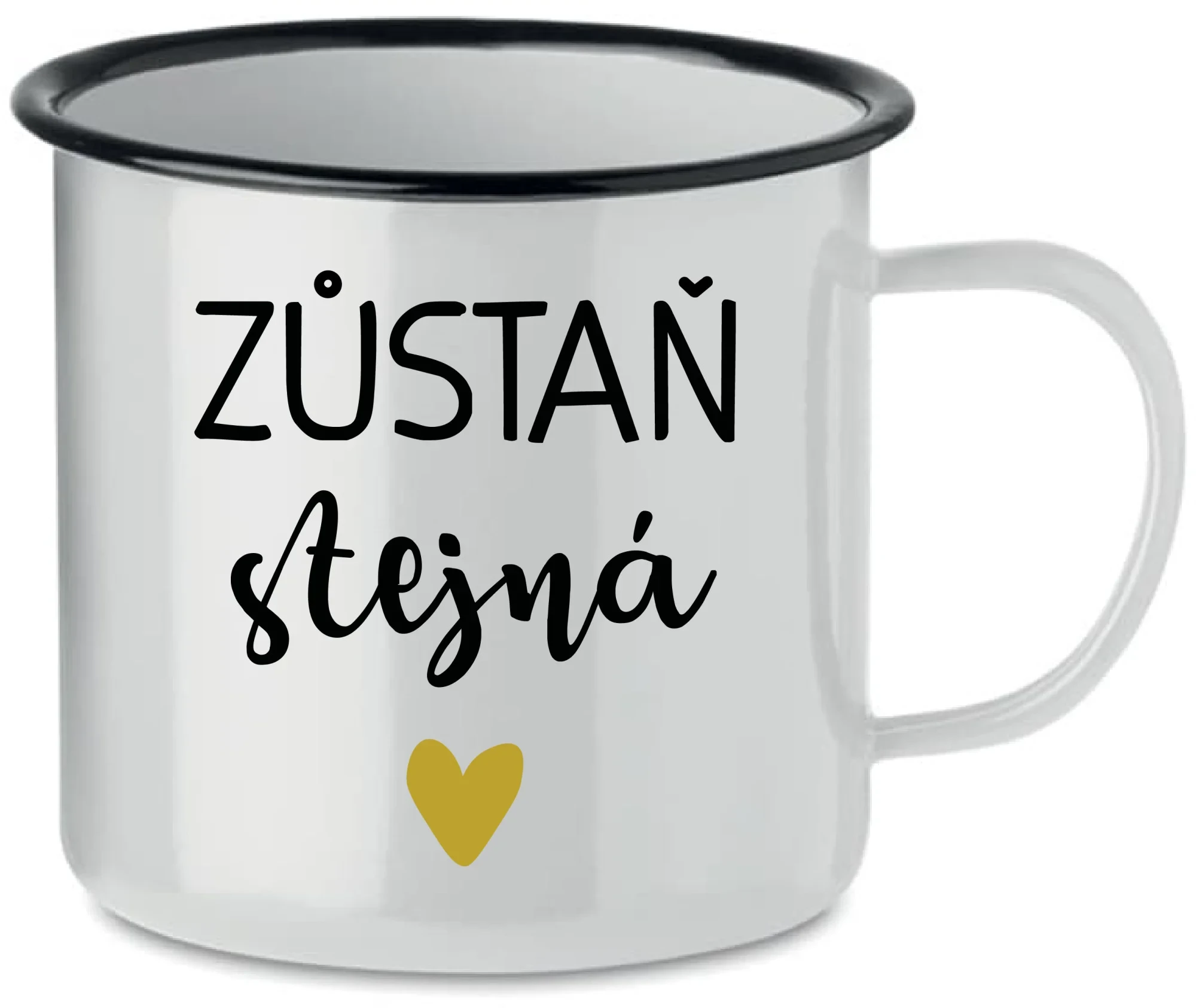 Smaltovaný Plecháček pro Chvíle Pohody - S Úsměvem a Teplem V našem rychlém světě je důležité najít si chvilku klidu a pohody. Naše nová kolekce smaltovaných plecháčků je jako stvořená právě pro tyto momenty. Každý plecháček je vyroben s láskou a pečlivostí, aby doprovázel vaše chvíle odpočinku, ať už si vychutnáváte šálek voňavé kávy, lahodného čaje nebo teplého kakaa. S objemem 350 ml jsou tyto tradiční smaltované hrnky perfektními společníky pro každý den. A co je na nich nejlepší? Každý z nich nese vtipný motiv: ZŮSTAŇ STEJNÁ, který rozjasní váš den a přinese úsměv na tvář. Tyto hrnky jsou jako malé pohlazení pro duši - ideální pro chvíle, kdy jste sami sebou, nebo pro ty nezapomenutelné okamžiky strávené s vašimi nejbližšími. Zapomeňte na chvíli na všechny starosti a užijte si klidný moment s naším smaltovaným plecháčkem. Objednejte si jej nyní a připravte se na maximální požitek z každého doušku! Doporučujeme ruční mytí tohoto produktu pro zachování jeho kvality a trvanlivosti. Nedoporučujeme umisťovat do myčky na nádobí.