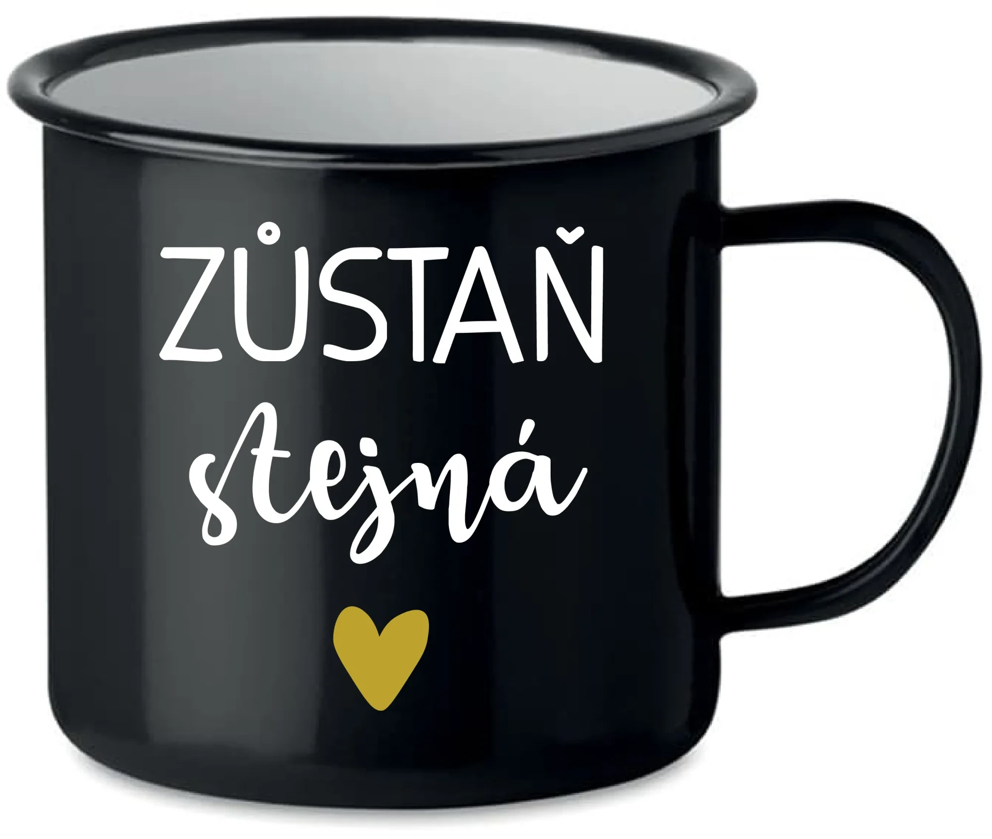 Smaltovaný Plecháček pro Chvíle Pohody - S Úsměvem a Teplem V našem rychlém světě je důležité najít si chvilku klidu a pohody. Naše nová kolekce smaltovaných plecháčků je jako stvořená právě pro tyto momenty. Každý plecháček je vyroben s láskou a pečlivostí, aby doprovázel vaše chvíle odpočinku, ať už si vychutnáváte šálek voňavé kávy, lahodného čaje nebo teplého kakaa. S objemem 350 ml jsou tyto tradiční smaltované hrnky perfektními společníky pro každý den. A co je na nich nejlepší? Každý z nich nese vtipný motiv: ZŮSTAŇ STEJNÁ, který rozjasní váš den a přinese úsměv na tvář. Tyto hrnky jsou jako malé pohlazení pro duši - ideální pro chvíle, kdy jste sami sebou, nebo pro ty nezapomenutelné okamžiky strávené s vašimi nejbližšími. Zapomeňte na chvíli na všechny starosti a užijte si klidný moment s naším smaltovaným plecháčkem. Objednejte si jej nyní a připravte se na maximální požitek z každého doušku! Doporučujeme ruční mytí tohoto produktu pro zachování jeho kvality a trvanlivosti. Nedoporučujeme umisťovat do myčky na nádobí.